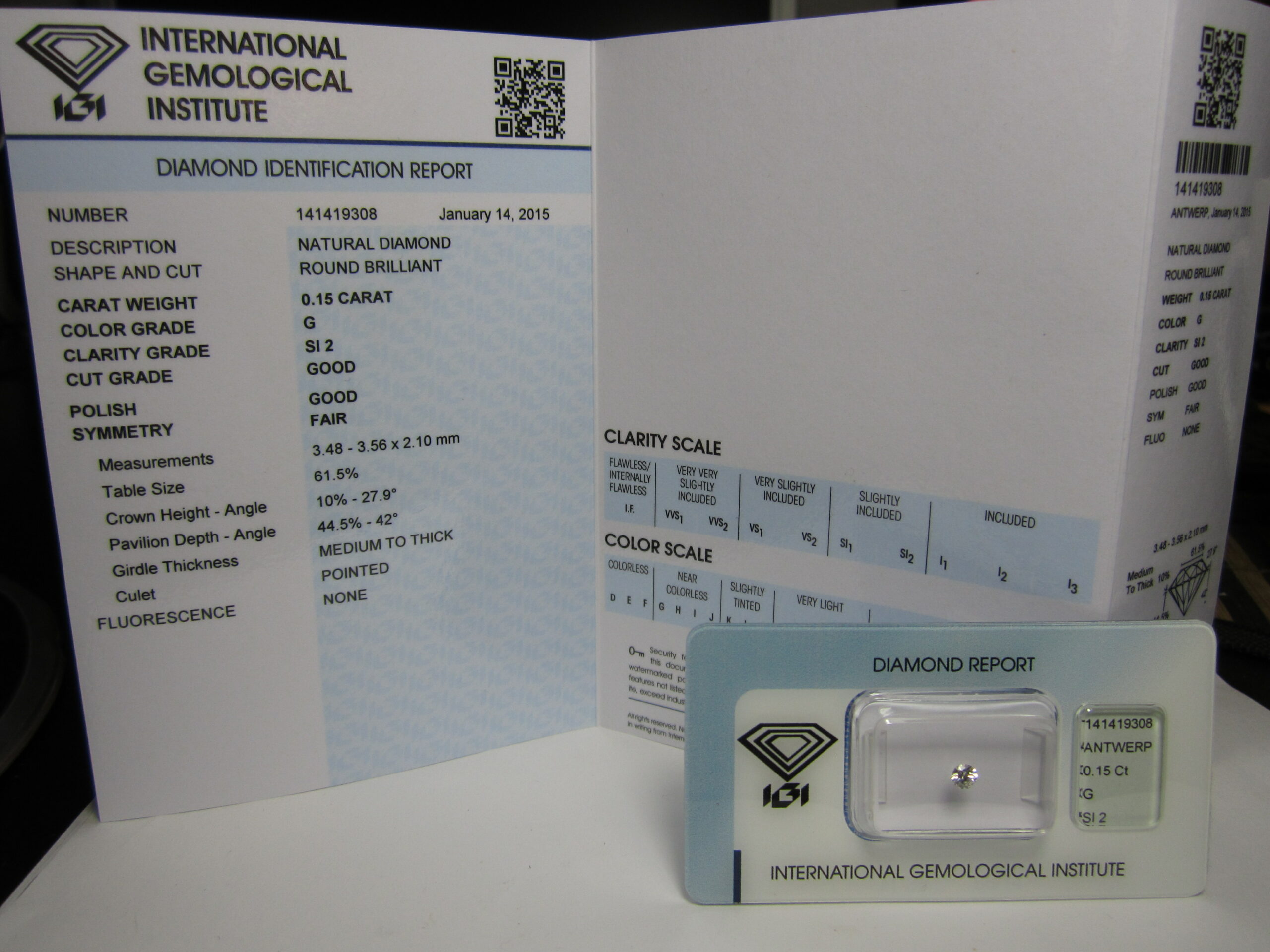Diamant – Brillant, G, SI2, 0,15 carat, Good / Good / Fair / None