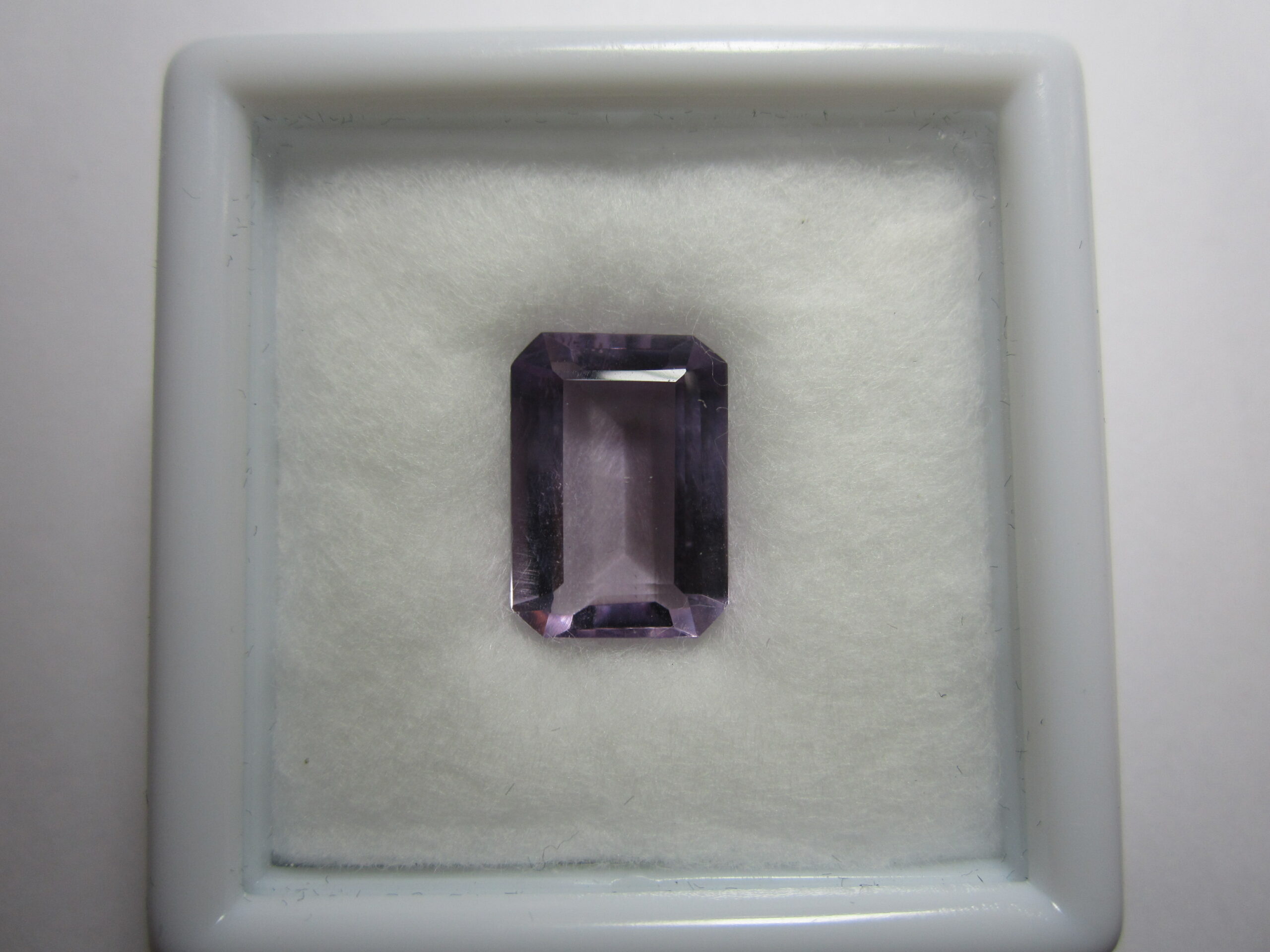 Une Améthyste de plus de 5 carats, taille émeraude à pans coupés.